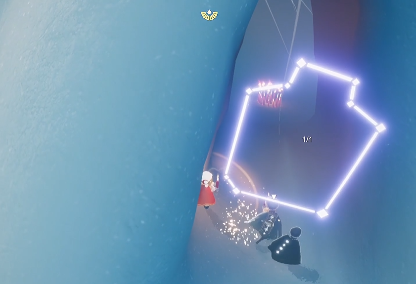 当你通过电梯或技巧抵达顶层后,目标区域便近在眼前。顶层是一个巨大的神殿,如果你是为了完成冥想任务,需要朝着终点神坛的左侧山脚下飞去,抬高视角便能发现隐藏的冥想点,在那里坐下留言即可。若目标是探索顶层秘境,其入口同样位于神坛左侧的山脚下,进入后可以欣赏星空并找到先祖。